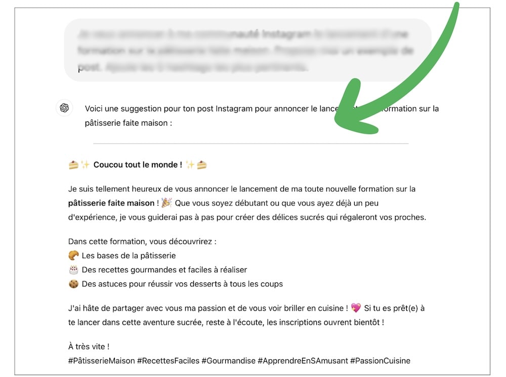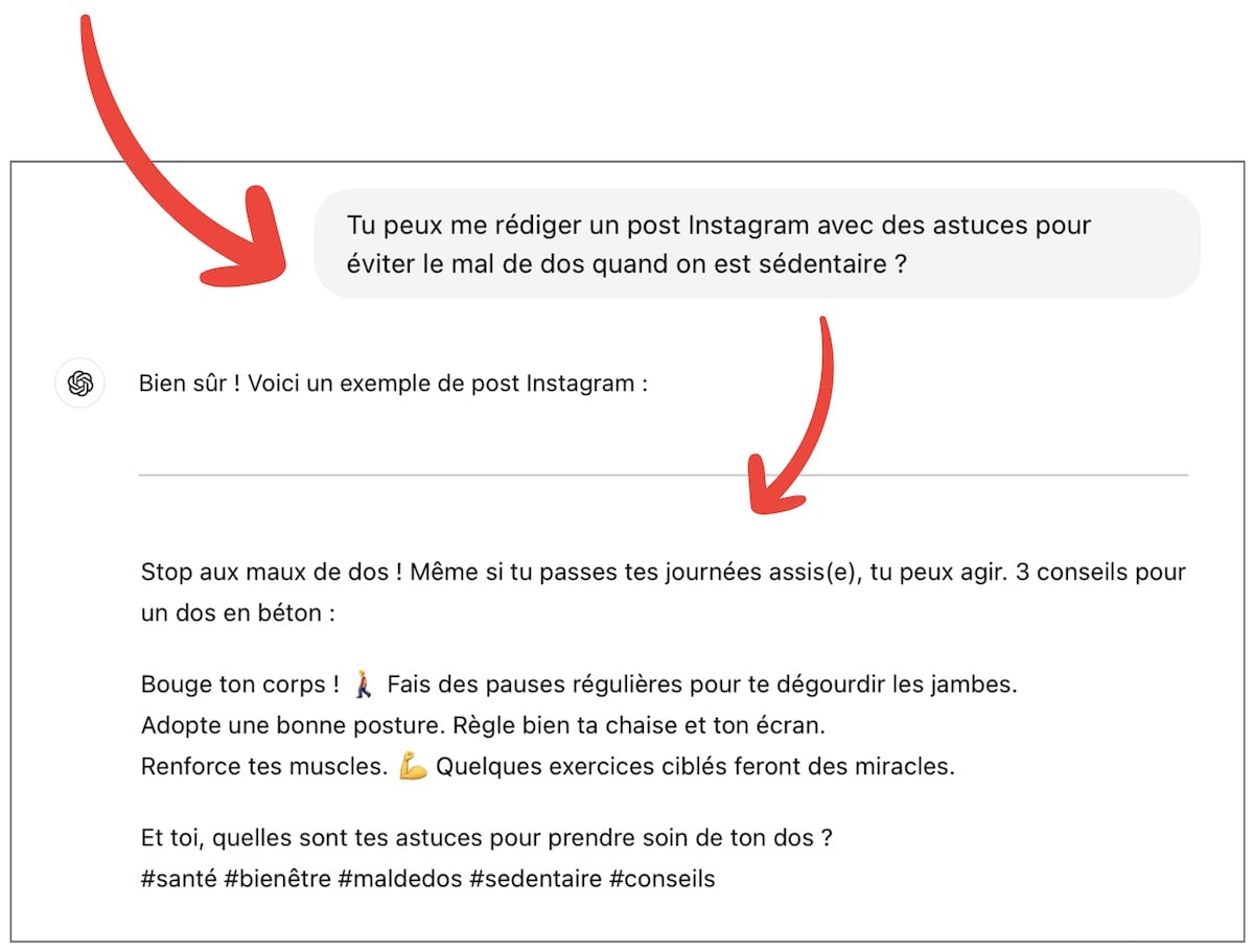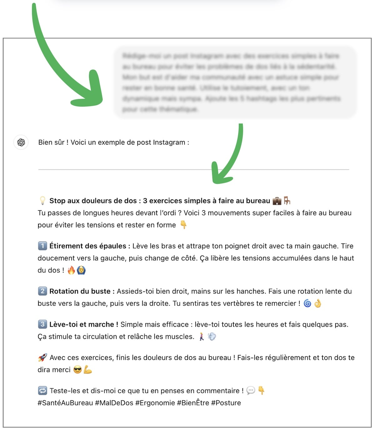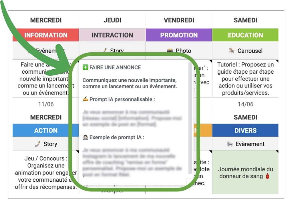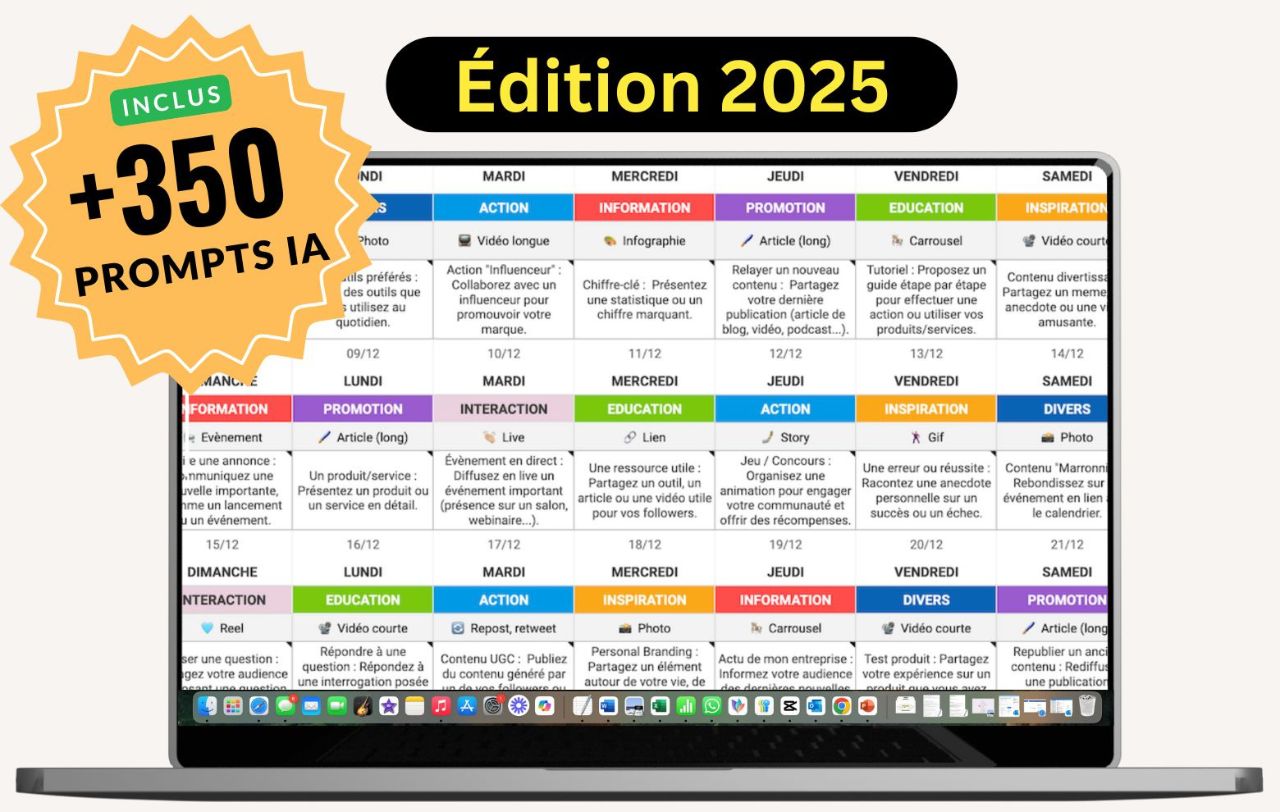 Chaque idée de publication quotidienne est accompagnée d'un prompt pour rédiger plus facilement grâce à l'intelligence artificielle si tu as besoin. 🧠